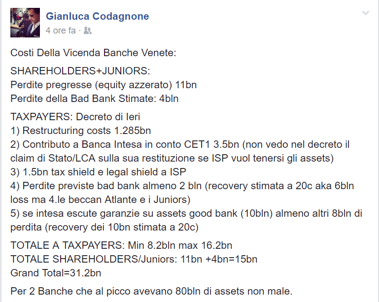 - Sul blog di Bruegel Silvia Merler, partendo dalla vicenda delle banche venete, evidenzia la tendenza che ha caratterizzato la gestione delle crisi bancarie degli ultimi anni: rimandare la soluzione dei problemi e subordinare la logica economica a quella politica.